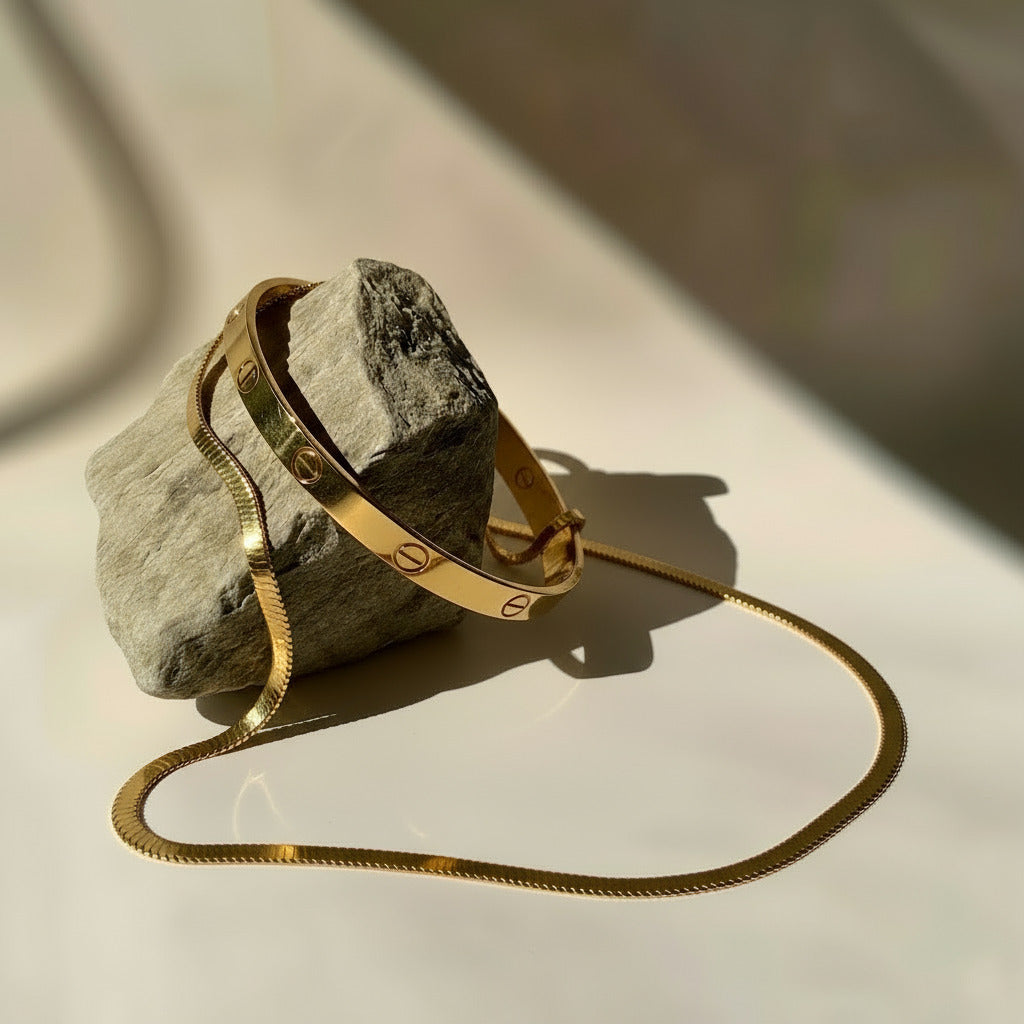 Discover the magic of our fine jewelry, where contemporary style meets unbeatable durability for timeless elegance! Crafted from the finest titanium or sterling steel and lavishly coated in 18K gold (unless otherwise specified in the description), our pieces are designed to be water-resistant and tarnish-free, ensuring they remain as stunning as the day you first wear them. We're thrilled to offer you these exceptional treasures at premium prices. Get ready to elevate your style with our dazzling collections!